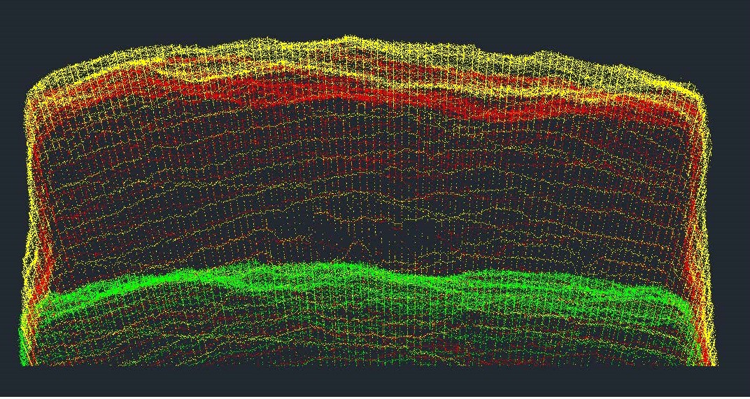 Description du projet : Le client était intéressé par l’analyse de la différence de profondeur de coupe et de mise à l’échelle requise entre les tirs pour suivre les performances de tir par rapport aux changements de souffle effectués. Nous avons recueilli des données de scan 3D Quarryman de la butée avant, post-explosion et post-mise à l’échelle. Ensuite, Bethany a analysé les volumes et les profondeurs de coupe dans Carlson AutoCAD. De plus, nous avons percé les trous dans la tranchée pour examiner la précision du forage et ses effets sur la coupe et la mise à l’échelle. Dans l’ensemble, le client est arrivé à la conclusion qu’il devrait ajuster certaines procédures de forage pour s’assurer que le forage a été effectué dans les angles appropriés, en assurant la meilleure coupe.